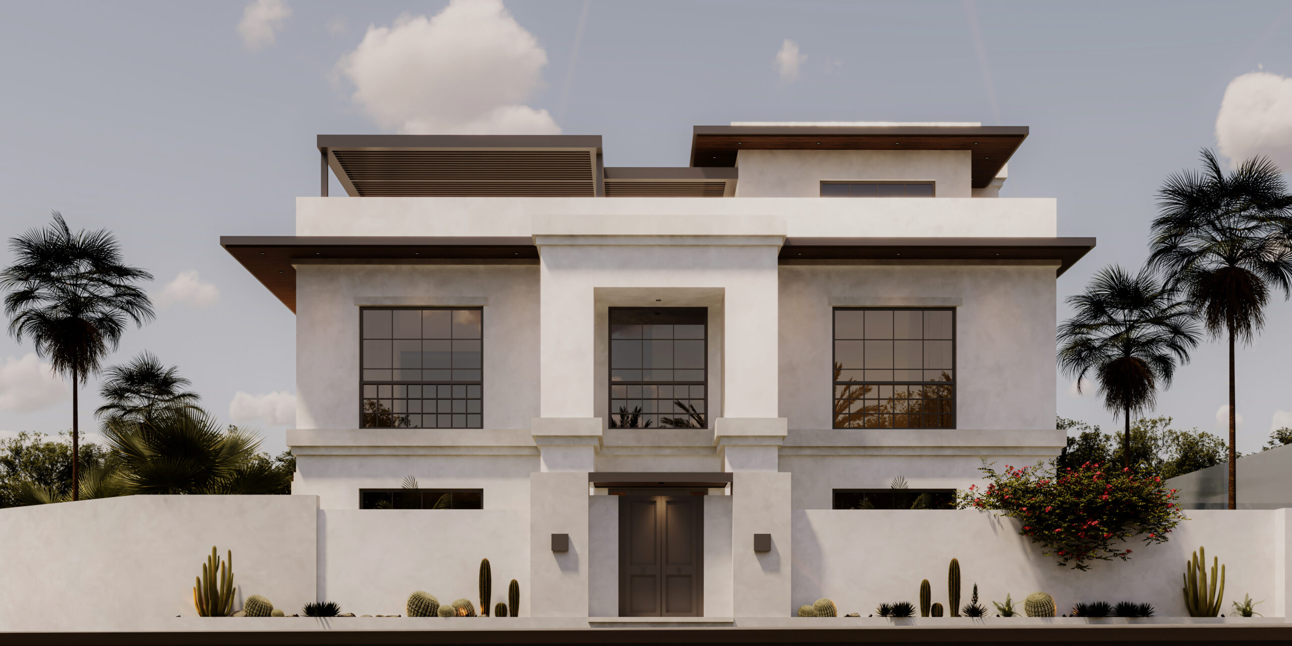 A construction project currently in progress for a luxurious G+1+R Private Villa in Dubai.