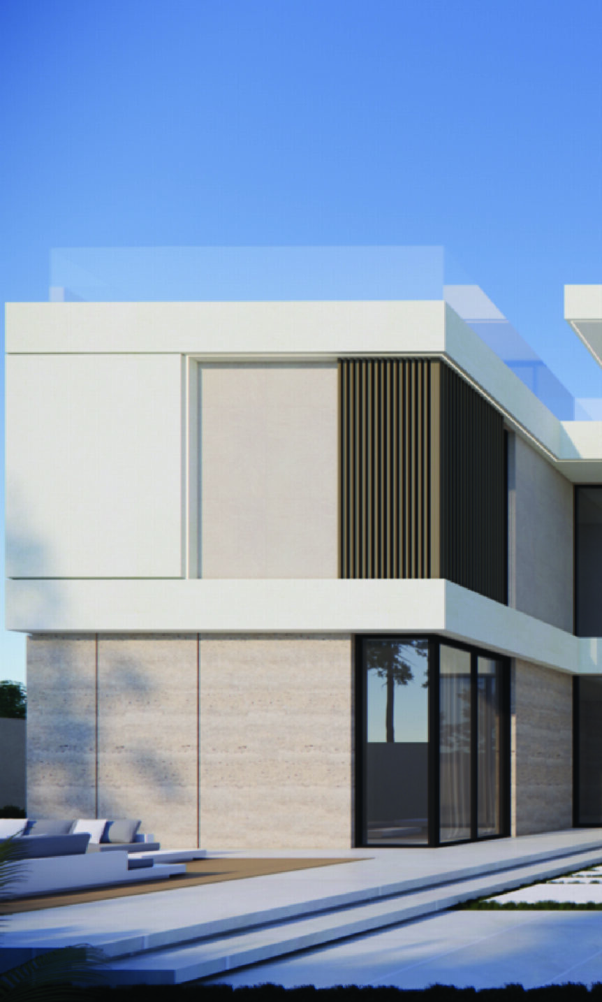 A construction project currently in progress for a luxurious G+1+R Private Villa in Dubai.